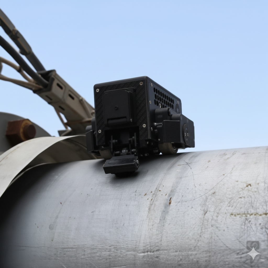 Infrascan combines drone and crawler technologies in a single integrated system—delivering complete access to assets that were previously unreachable. Its hybrid design allows smooth transition between air and surface, easily crossing flanges, valves, and other barriers that stop traditional systems.